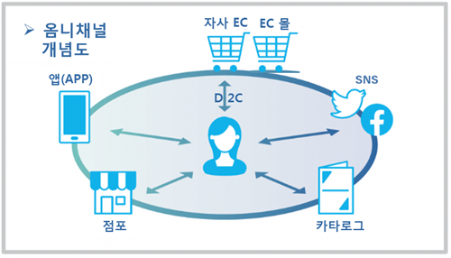 옴니채널(Omni-Channel Retailing)은 점포와 EC사이트, SNS 등 온·오프라인 불문하고 모든 매체를 활용해 고객과 접점을 만들어 구입 경로를 의식시키지 않고 판매 촉진에 연결하는 전략을 말한다. 즉, ‘실제 점포와 인터넷 쇼핑몰의 경계를 없앤 새로운 쇼핑 형태’이다. ‘옴니’는 라틴어를 어원으로, ‘모든’을 의미한다. ‘채널’은 잘 아시겠지만, ‘경로, 집객하기 위한 매체’를 말한다. 이 채널 중에 가장 중요한 경로가 ‘자사몰(이하 자사 EC)’이다.