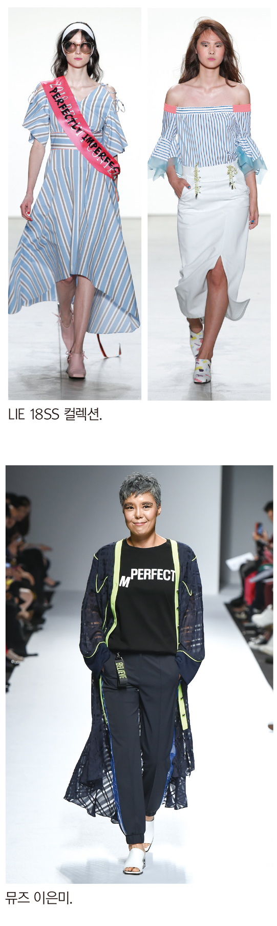 완벽하지 않은(IMPERFECT) 내가 정말 완벽(PERFECT)한 해! LIE 18SS 컬렉션은 획일적이고 완벽함을 아름다움의 기준으로 강요하는 생각을 거부하고, 자신의 당당한 아름다움을 추구하는 에너지 가득하고 매력적인 그녀들에게서 영감을 받았다.