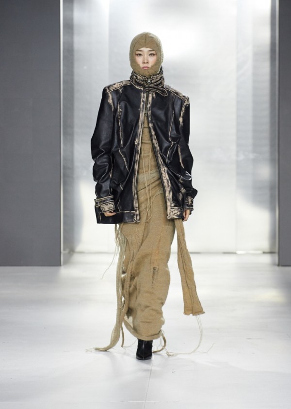 강민서 학생의 작품 ‘RHEA.’는 자연과 인간의 세월의 변화를 아름다움으로 승화시킨 포토그래퍼 알리샤 브로도비치(Alicja Brodowicz)의 ‘VISUAL EXERCISES’라는 작품에서 영감을 받았다. 가죽과 니트를 메인소재로 사용해, 주름과 패턴 확장, 볼륨을 통해 늘어지고 흘러내리는 느낌을 구사하며 '시간의 흐름'을 표현했다. 작품 타이틀인 ‘RHEA.’는 그리스 신화에 등장하는 대지의 여신이라는 뜻.