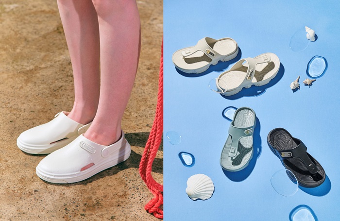 클로그 슈즈 ‘사하라’는 회전 가능한 힐 스트랩을 적용해 샌들과 뮬 2way로 착용 가능해 일상, 페스티벌, 바캉스 휴양지 등 어디에서나 착용 가능하다. 베이지와 아이보리, 라벤더 등 컬러 3종으로 구성됐다. 경량성이 뛰어나며, 물에 젖지 않는 IP 소재를 적용하는 한편 뛰어난 접지력으로 많은 비가 내리는 날에도 미끄럼 걱정 없이 외출 시 유용하게 신을 수 있다.