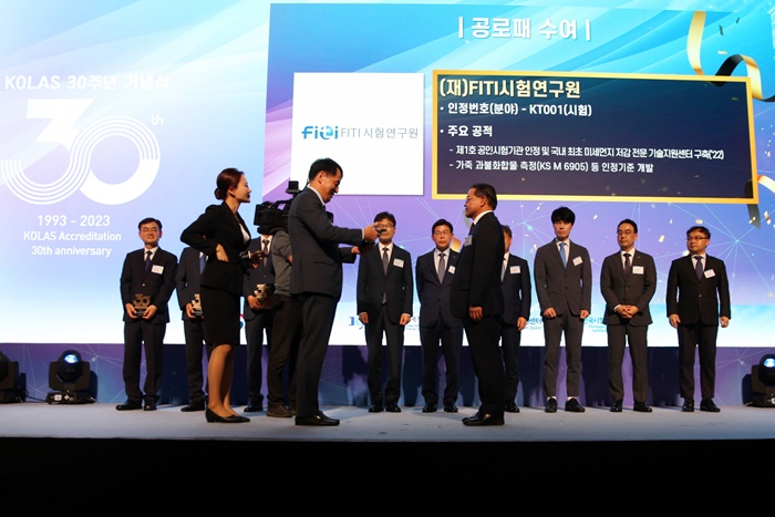 FITI시험연구원(원장 김화영)은 19일 산업통상자원부 국가기술표준원이 개최한 ‘한국인정기구(KOLAS) 30주년 기념식’에서 공로패를 수상했다.