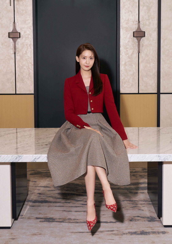 스타일링에 따라 단독 착용이 가능하며, 자카드 패턴의 볼륨감 있는 원피스와 골드톤의 엠블럼 버튼의 크롭 자켓으로 고급스러움을 더했다.
