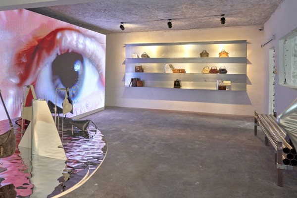 전시장 1층은 쿠론의 새로운 컬렉션 중 하나인 ‘뉴 트렌디’의 주력상품 ‘쉐이퍼 숄더백’을 형상화한 대형 메탈 조형물이 설치된다. 쿠론은 이번 시즌 컬렉션을 크게 ‘뉴 클래식(NEW CLASSIC)’과 ‘뉴 트렌디(NEW TRENDY)’로 이원화하여 전개하고 있다. ‘쉐이퍼 숄더백’은 1960년대 모더니즘 시대의 건축물, 조형물에서 영감을 받아 언발란스한 형태의 기하학적 디자인이 특징인 제품이다.