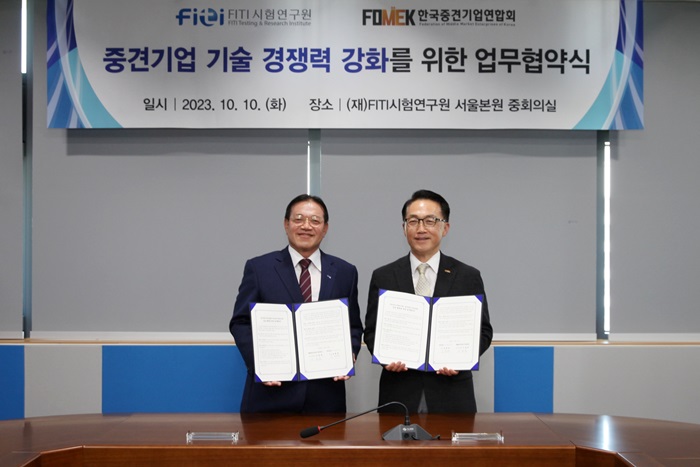 FITI시험연구원은 10일 서울본원에서 한국중견기업연합회와 중견기업의 기술 경쟁력 강화 및 글로벌 시장 진출을 돕기 위한 업무협약을 체결했다.