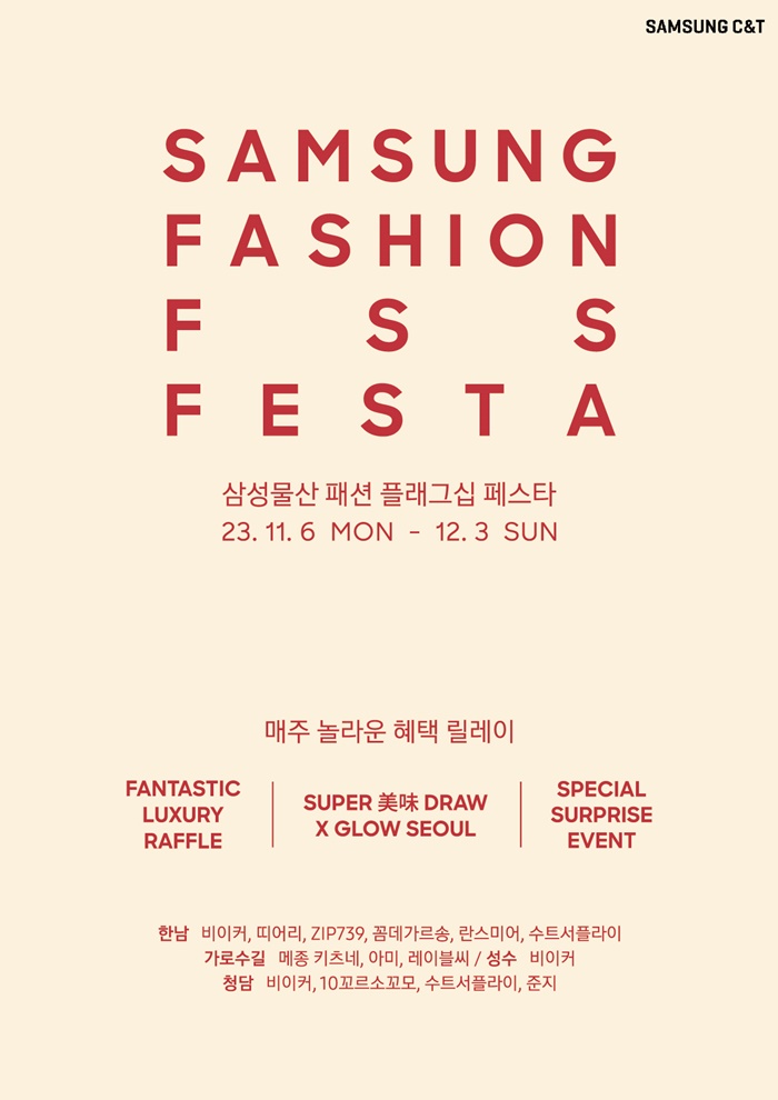 삼성물산 패션부문은 6일부터 내달 3일까지 서울 한남동, 청담동, 신사동 가로수길, 성수동에 위치한 가두 플래그십 스토어를 중심으로 다양한 프로모션을 진행하는 ‘삼성물산 패션부문 플래그십 스토어 페스타’를 연다.