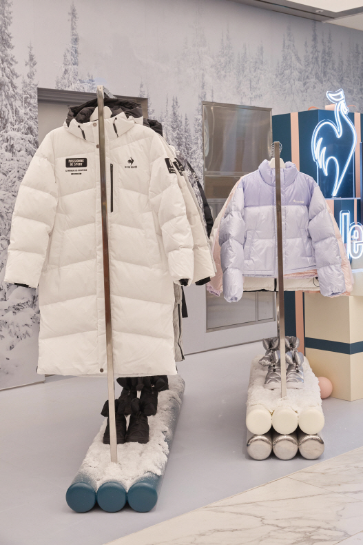 화사하게 꾸며진 크리스마스트리와 소품들이 장식된 포토존에서는 ‘르꼬’, ‘꼬끄’와 사진 촬영을 하며 즐거운 추억을 남길 수 있으며, 쇼핑 존에는 구름 같은 가벼운 착용감과 리버시블이 가능한 ‘에어 클라우드다운’과 듀얼 플렉스 소재로 보온성에 활동성까지 더한 ‘플렉스다운’, 다이아 형태의 퀼팅 소재와 세련된 디자인의 여성용다운 컬렉션인 ‘다이망 다운’ 등의 다양한 다운 컬렉션을 만날 수 있다.