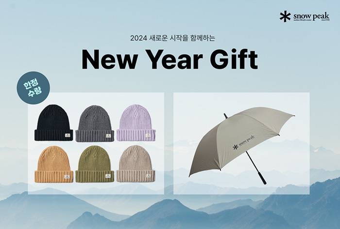 먼저 구매 금액별 사은품 이벤트로 스노우피크만의 설 스페셜 기프트가 마련되어 있다. 부드러운 촉감의 ‘폴디드 비니’, 실용성 높은 ‘로고 장우산’, 퀄리티 높은 ‘아스타리스크 로고 양말’, 따뜻함이 16시간 동안 지속되는 ‘손난로 핫팩(5개입)’ 등을 증정한다. 모든 사은품은 한정 수량으로 조기 소진될 수 있다.
