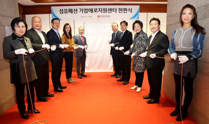 한국섬유산업연합회(회장 최병오, 이하 섬산련)는 지난 7일 섬유센터 16층에서 섬유패션업계 전용 규제·애로 소통창구인 ‘섬유패션 기업애로지원센터’ 현판식을 개최했다.