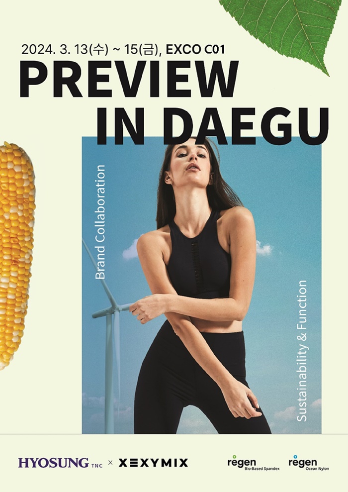 효성티앤씨가 오는 13일부터 15일까지 대구 EXCO에서 개최되는 국내 최대 섬유 산업 전시회인 ‘2024 대구국제섬유박람회(Preview in Daegu; PID)’에서 국내 1위 애슬레저 브랜드인 ‘젝스믹스’와 콜라보 패션 제품을 대거 선보인다.