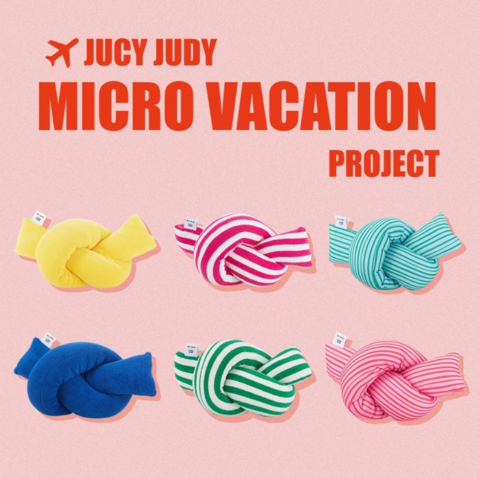 특히 이번 컬래버레이션 제품은 파르베샵의 시그니처 디자인 쿠션인 위글쿠션을 쥬시쥬디의 ‘MICRO VACATON’이라는 시즌 컨셉에 맞게 일상은 물론 여행지에서도 사용할 수 있는 컬러풀한 색감과 유니크한 디자인으로 출시했다.