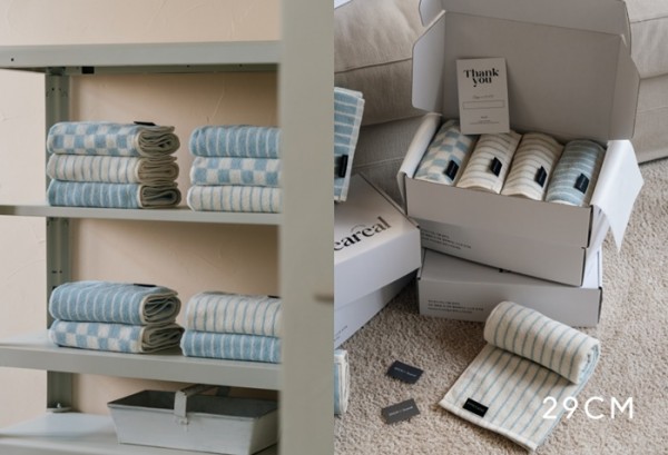 29CM 거래 데이터에 따르면 이달 1일부터 23일까지 타월 카테고리의 거래액은 지난해 같은 기간보다 170% 신장했다. 다채로운 패턴과 색상부터 자수나 라벨로 포인트를 더한 디자인 타월이 인기를 모으며 거래액을 견인한 것으로 분석된다.