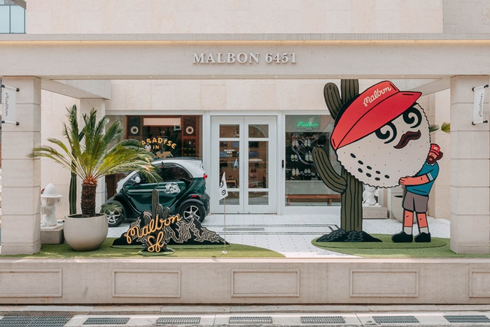 지난 6월 14일, 말본골프는 크리에이티브 디자인 스튜디오 ‘슈퍼픽션’과 협업한 티셔츠 컬렉션 출시 기념으로 강남 도산대로에 위치한 플래그십 스토어 ‘말본6451’ 외관을 슈퍼픽션의 감각적인 일러스트로 꾸몄다. 말본골프의 여름 캠페인 ‘파라다이스 인 플레이’를 슈퍼픽션의 독창적 시각으로 재해석한 일러스트는 슈퍼픽션 캐릭터가 커다란 말본골프 버킷(BUCKETS) 캐릭터를 들고 있거나, 여름 캠페인 영상 배경이었던 멕시코에서 골프를 즐기는 위트 있는 디자인의 포토존을 마련해 사람들의 이목을 끌었다.