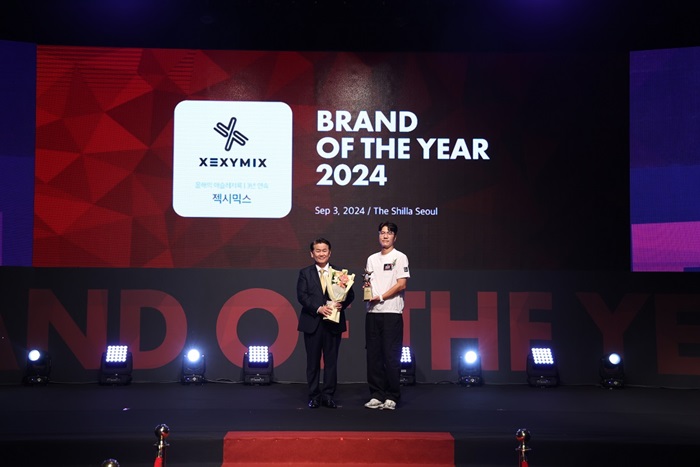 미디어커머스기업 브랜드엑스코퍼레이션(각자대표 이수연, 강민준)이 전개하는 액티브웨어 ‘젝시믹스(XEXYMIX)’가 지난 3일 개최된 ‘2024 올해의 브랜드 대상’에서 3년 연속 국내와 중국 ‘애슬레저룩’ 부문 대상을 수상했다.