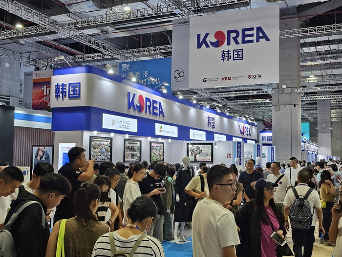 우리나라는 이번 전시회에서 중소기업중앙회의 지원을 받아 한국패션소재협회가 주관한 한국관을 통해 총 41개 기업이 44개 부스(396sqm.) 규모로 참가했다. 한국관은 ‘지속 가능성과 혁신’을 주제로, 기능성 섬유, 친환경 소재, 최신 패션 트렌드를 반영한 디자인 원단 등 한국만의 독창적이고 경쟁력 있는 섬유 제품들을 선보였다.