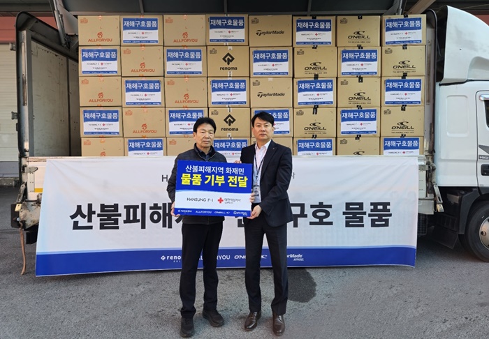 한성에프아이(대표 김영철)가 자사 브랜드 올포유, 레노마골프, 테일러메이드어패럴, 오닐을 통해 산불 피해 지역 주민들을 위한 10억 원 상당의 의류를 기부했다고 8일 밝혔다.