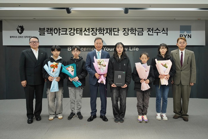 7일 오전 서울 서초구 블랙야크 양재사옥에서 진행된 BYN장학금 전수식에는 강태선 이사장 등 관계자들이 참석했다.