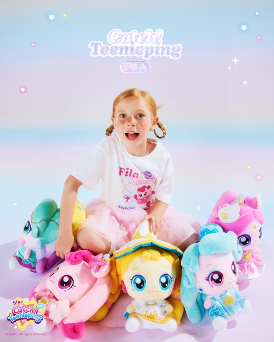 이번 컬렉션은 휠라 키즈 특유의 감성에 ‘캐치! 티니핑’ 5번째 시즌인 ‘슈팅스타 캐치! 티니핑’의 인기 캐릭터 하츄핑, 빛나핑, 초롱핑, 빤짝핑과 레전드 티니핑인 오로라핑을 포인트로 활용해 스포티하면서도 사랑스럽게 디자인했다. 아이들의 취향을 저격하는 귀여운 캐릭터와 포근한 파스텔톤 색감을 입힌 의류, 신발, 용품 등 다채로운 아이템으로 선보인다.