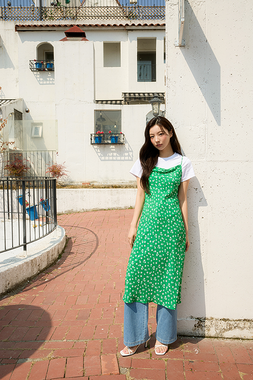 특히, 여성스러운 스퀘어 넥라인과 볼륨 소매로 페미닌한 무드를 연출한 원피스는 넥라인을 밴딩으로 처리해 오프숄더로도 착용할 수 있고, 우아하게 퍼지는 실루엣과 사이드 슬릿도 매력적이다. 슬림한 라인이 돋보이는 프릴 슬리브리스 블라우스는 잔잔한 플라워 패턴과 프릴로 청순미를 강조했고, 활용도가 높은 그래픽 티셔츠와 시원한 원사로 한여름에도 가볍게 입기 좋은 니트 슬리브리스 톱과 가디건 세트도 함께 만날 수 있다.