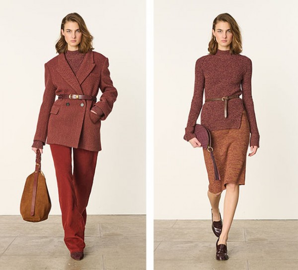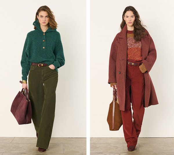 헤링본과 타탄 체크 패턴이 돋보이는 울 자켓은 벨트와 함께 연출하면 여성스러운 실루엣을 살릴 수 있으며, 핏한 니트와 소매 볼륨이 강조된 니트는 오버핏 아우터와 매치할 경우 입체감 있는 착장을 완성할 수 있다. 카키와 버건디 컬러의 코듀로이 팬츠는 여유 있는 스트레이트 핏으로 가을부터 겨울까지 폭넓게 활용 가능하다.