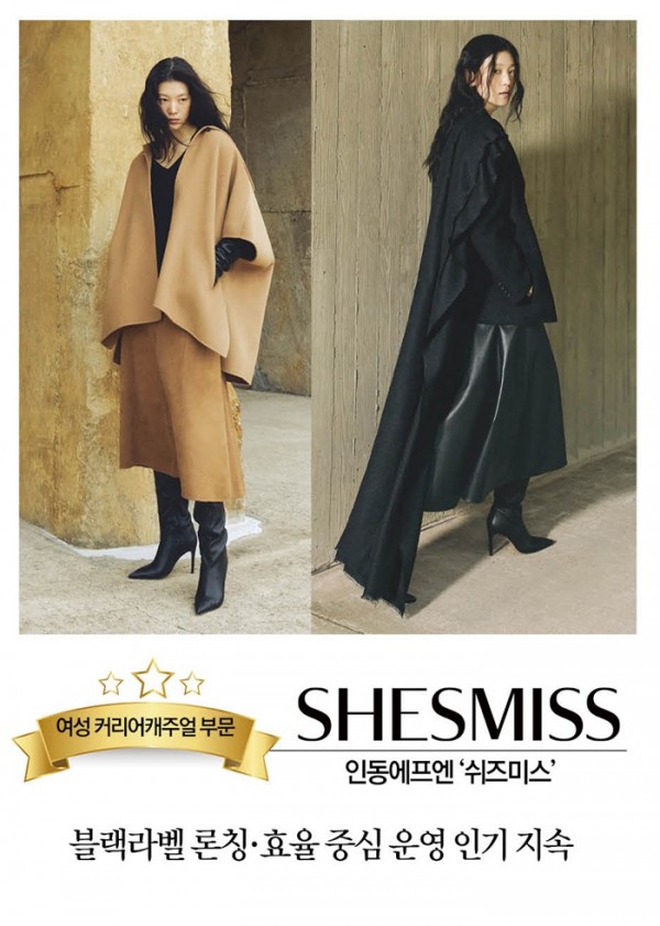 인동에프엔(대표 장기권)이 전개하는 ‘쉬즈미스’는 최근 여성복 시장에서 가장 사랑받는 브랜드 중 하나로 꼽힌다. 올해 역시 블랙라벨 론칭과 효율 중심의 운영 전략을 통해 1,800억 원의 매출을 기록할 것으로 예상된다.