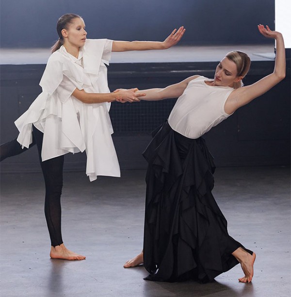 프레젠테이션에서 특히 눈길을 끈 연출은 두 명의 무용수가 참여한 퍼포먼스다. 일치와 대립, 강인함과 연약함이 교차하는 움직임을 통해 하나의 정체성이 지닌 다층적인 면모를 드러냈다. 호흡을 맞추다가도 어긋나는 동작을 반복하며 긴장과 균형이 공존하는 흐름을 만들어냈다. 퍼포먼스와 런웨이를 위해 제작된 음악 역시 상반된 성격의 사운드를 결합했다. 알프스에서 채집한 자연의 소리에서 도시적인 전자음으로 전환되며 컬렉션의 맥락을 이어갔다.