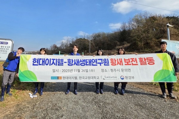 또한 현대이지웰은 지난 2024년 한국교원대학교와 'ESG 협력을 위한 사업 개발과 운영 업무 협약'을 체결하고 이 대학 소속 황새생태연구원과 지난해부터 충청북도 청주시 문의면 일대에서 국제적 멸종위기종인 황새 보호를 위한 다양한 활동을 펼치고 있다. ▲번식을 위한 둥지탑 설치 ▲먹이터 제공용 무논습지 조성 ▲먹황새 사육시설 구축 등이 대표적이다.
