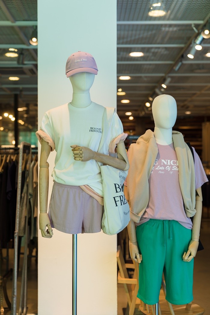 비이커는 악뮤 앨범의 핵심 메시지인 ‘비욘드 프리덤’을 비롯해 브랜드 로고 등 다양한 타이포를 활용한 티셔츠, 반바지, 에코백 등으로 구성된 캡슐 컬렉션 상품을 출시했다.