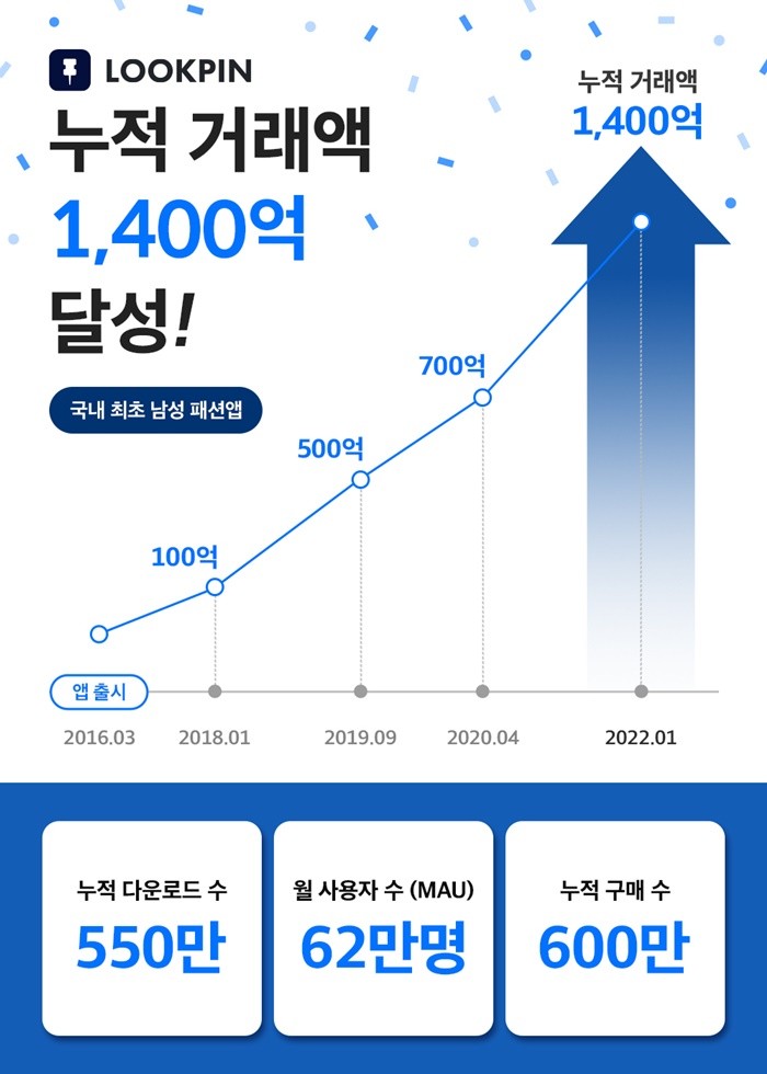 남성 패션 앱 ‘룩핀’ 누적 거래액 1400억 돌파