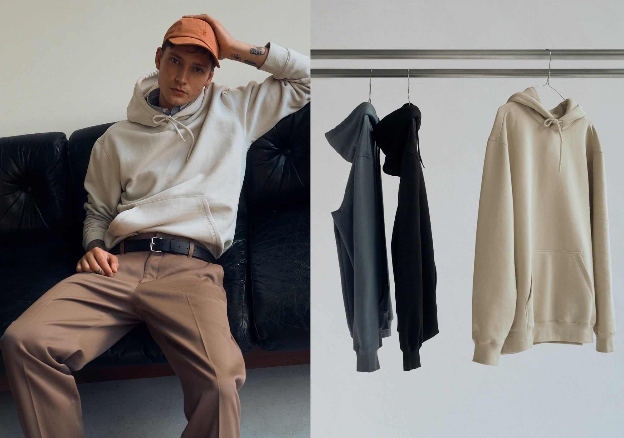 H&M의 가장 인기 있는 제품들이 에센셜이라는 컨셉으로 출시되어 남성의 옷장을 위한 품질, 착용감과 일관성을 높이는 여정의 시작을 보여준다.