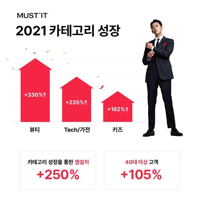 이 같은 상품 및 카테고리 라인업 강화에 머스트잇 이용자 수 또한 대폭 증가했다. 머스트잇의 2021년 신규 앱 설치 건수는 2020년 대비 250% 큰 폭으로 성장했으며, 경제력을 갖춘 40대 이상 고객 역시 105% 증가하며 타겟 확장에도 성공적인 결과를 거뒀다.