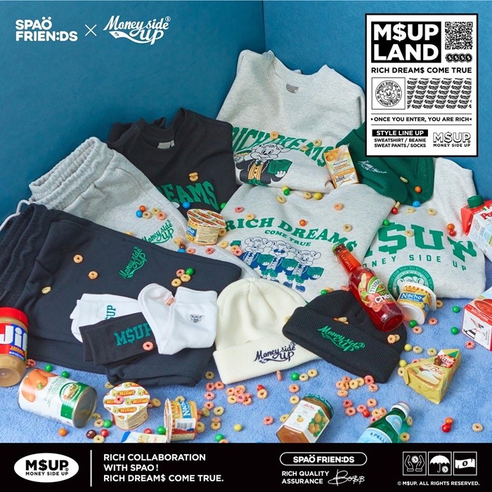 스파오는 협업 상품 출시를 기념해 특별한 이벤트도 준비했다. 맨투맨 상품을 구매한 고객에게 모형 지폐와 리무버블 스티커 등이 담긴 ‘RICH PACK’을 증정한다. 협업 상품은 스파오 공식 온라인몰인 스파오닷컴과 무신사에서 28일 정오에 출시된다.