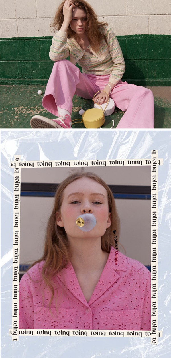 특히 처음 선보이는 23 SS 컬렉션은 유니크하고 키치한 감성을 기반으로 통통 튀는 느낌의 이름처럼 매력적인 컬러감이 돋보이면서, 일상에서 편안하고 감각적으로 입을 수 있는 아이템이 가득하다. ‘귀여운 반항아’라는 화보 컨셉에 컬러감을 더해 ‘토잉크’만의 자유로운 감성을 표현했다.