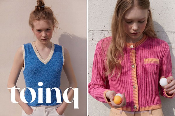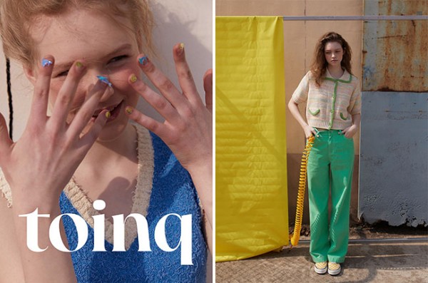 ‘토잉크(toinq)’는 공이 튀어 오르는 소리를 표현한 ‘toink’와 독특함을 뜻하는 ‘unique’의 합성어로, 어디로 튀어 오를지 모르는 공처럼 생기 넘치는 순간을 제안한다는 의미를 담았다. 변화와 다양성을 가진 자유분방한 라이프스타일을 지향하며, 위트 넘치고 개성 있는 리얼웨이 스타일링을 선보인다.