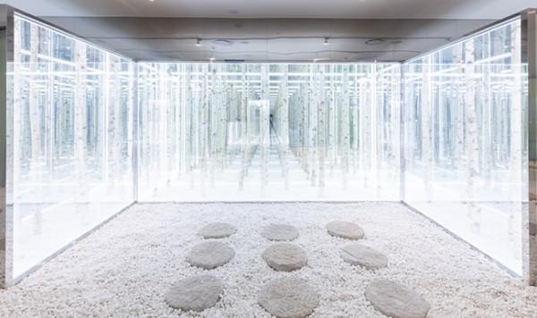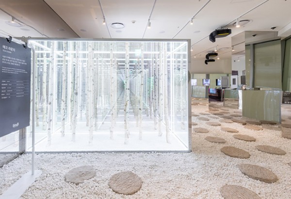 ◆테크라운지 포토존. 자작나무 숲길을 걷는 듯한 효과를 내고 있다.