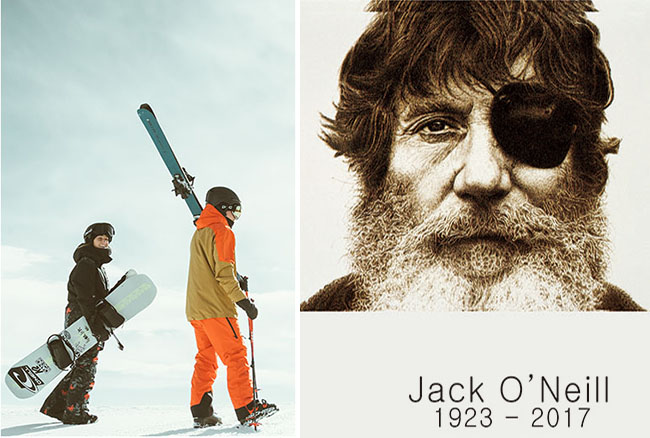 ▶액티브 스포츠와 라이프스타일 제품을 선보이며 전 세계적으로 젊은 층의 사랑을 받고 '오닐'제품(왼쪽)과 1952년 서퍼이자 탐험가, 환경교육자인 창립자 잭 오닐(오른쪽).