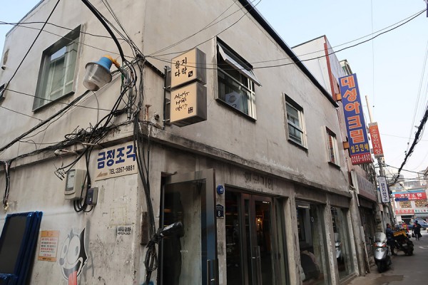20여년된 기존 공업사 건물을 유지한 ‘을지다락’ 외관