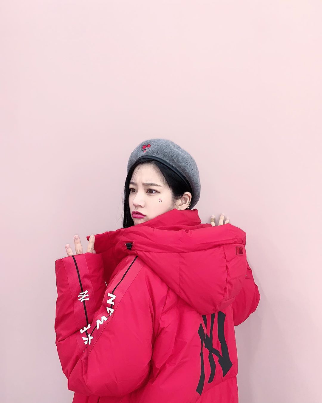 공개된 사진 속 이유비는 핑크색 벽을 배경으로 시크한 표정부터 장난기 가득한 표정까지 다채로운 매력을 발산해 눈길을 사로잡았다. 특히 이유비는 트렌디한 레드 컬러 MLB 롱패딩을 착용해 ‘인간 체리’를 연상케 하였으며, 여기에 베레모를 매치해 상큼하고 따뜻한 겨울 패션을 완성했다.