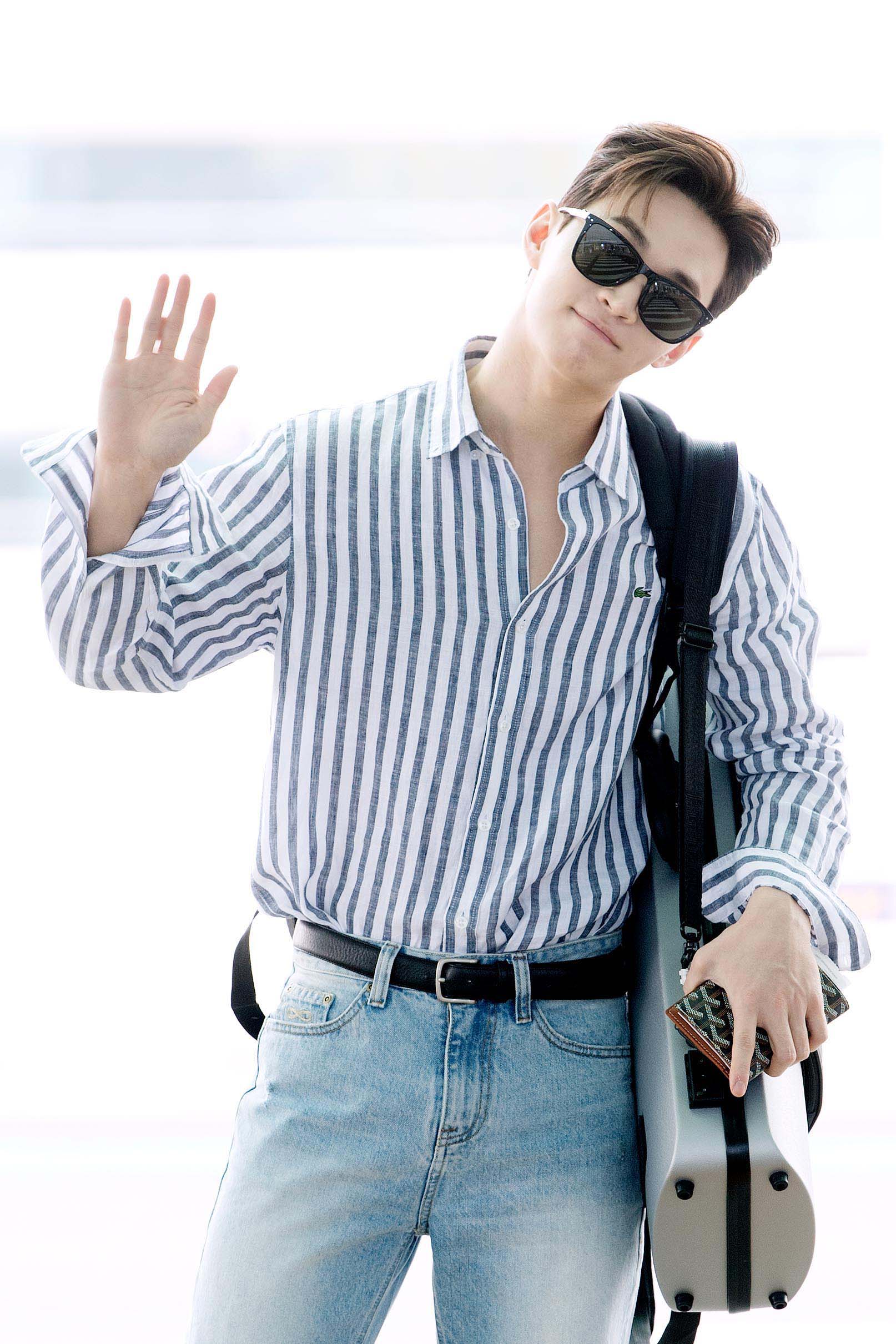 특유의 밝은 에너지를 발산하며 공항에 등장한 헨리는 스트라이프 패턴의 셔츠와 데님을 착용하고 포인트로 스니커즈를 매치해 캐주얼한 패션을 선보였다. 특히 레더 벨트로 엣지있게 포인트를 주고, 셔츠 버튼을 풀어 무심한 듯 시크한 무드를 연출하여 패셔니스타 다운 면모를 보여주었다.