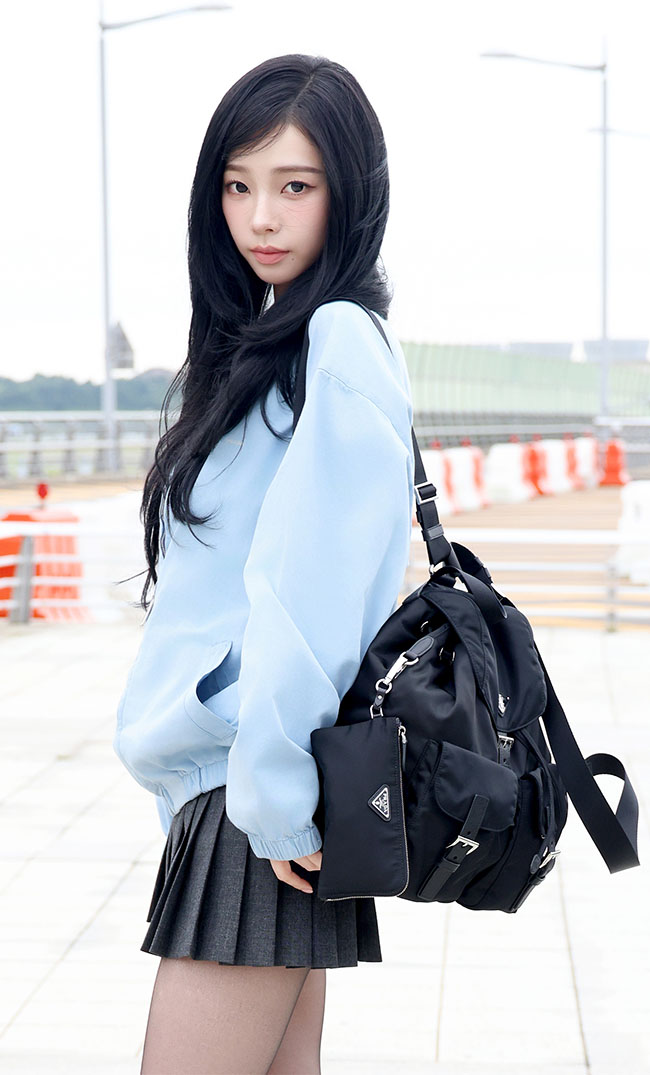 이날 카리나가 착용한 제품은 모두 프라다(PRADA) 제품으로 미니멀한 실루엣이 돋보이는 개버딘 블루종 재킷에 슬림핏 탱크 탑과 플리츠 미니스커트를 착용해 러블리하면서도 캐주얼한 스타일링을 연출했다. 여기에 슬림하고 테이퍼드된 실루엣의 스트레치 나파 가죽 부츠와 프라다의 아이코닉한 미디엄 리나일론 백팩으로 룩에 포인트를 더했다.