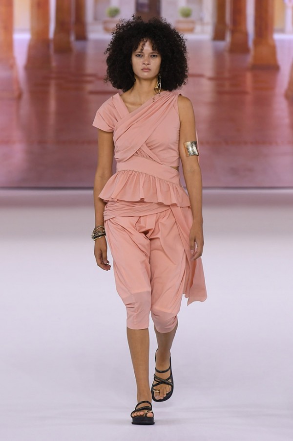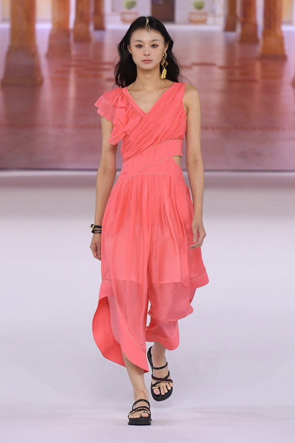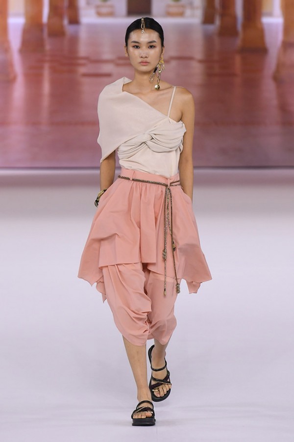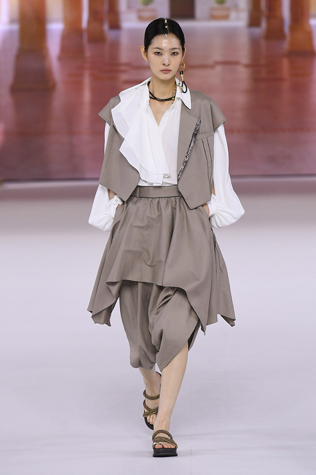 We reinterpret India's splendid fabric patterns, embroidery, and mysterious and subtle colors, and present a bohemian look borrowed from Indian traditional clothing such as boleros, harem pants, and long skirts, knot details, drape, and layering.