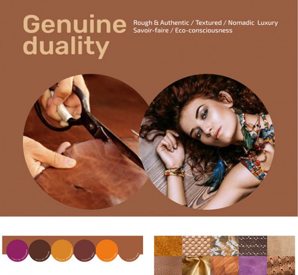 소재 및 질감 워시드 양가죽, 메탈 프리 태닝 가죽, 사피아노 및 기하학적 그레인, 플록 모티프 가죽, 누벅 '코듀로이', 형상 기억 가죽, 스트레치 누벅, 무지개 빛깔의 양가죽, 주름 가죽, 부드럽고 푹신한 페이턴트 가죽, 기하학적 가죽 메쉬, 리자드 스킨, 스포츠 네팅, 여름 퀼팅, 저지, 재활용 립스톱 나일론, 스피니커 나일론, 재활용 캐시미어, 열에 민감하고 열이 변하는 소재.