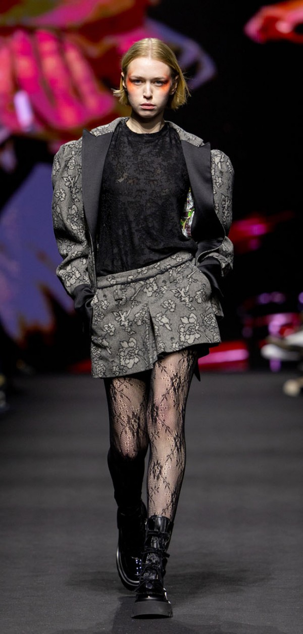 패턴은 타탄 체크, 레오파드 스팟, 아카이브에서 가져온 플라워 모티브 등을 제안한다. 헤어리한 소재감과의 결합이나 모션 블러 필터 효과를 통해 번진 듯이 표현하고 플라워 모티브의 경우 레이져 커팅을 활용한 3D 아플리케나 자수로까지 표현한다. 에디트 피아프의 노래 제목인 ‘ (아니, 난 후회하지 않아)’가 이번 시즌의 슬로건으로 제안한다.