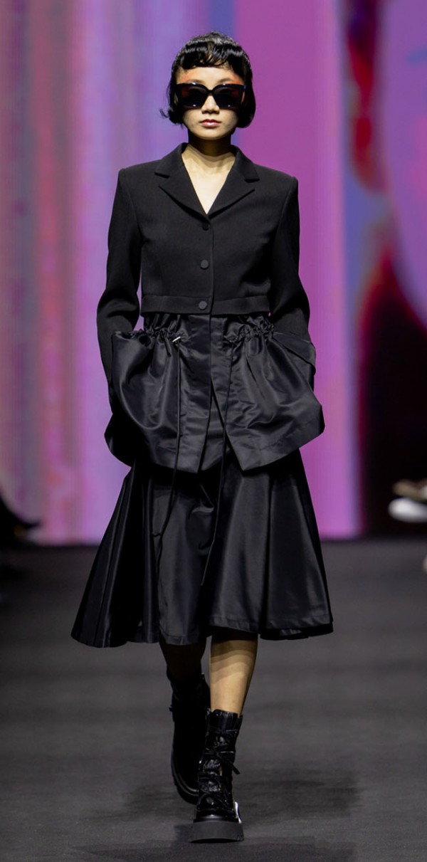 아이템은 스커트 수트, 셔츠와 스커트 콤보, 드레스로 심플하게 구성 하고 실루엣은 아워글래스 실루엣과 핏앤플레어 실루엣이 중심을 이루는데 소재감을 통해 불편하지 않게 표현한다. 요즘 스트리트의 필수 아이템을 첨가하여 지금의 감성으로 제안한다.