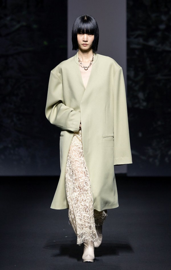컬렉션에서는 시간의 흐름을 상징하는 다양한 요소가 나타나며, 색상과 소재의 변화, 의상의 형태와 디자인은 모두 시간에 따른 등장과 변화를 상징한다. 곧 사라질 운명임을 암시하는 듯한 흐릿한 프린트나 반투명한 소재, 휘발성을 상징하는 요소들은 소멸의 이미지를 강조하고, 불완전한 듯한 디자인과 공허한 공간은 부재의 의미를 전달한다. 이는 존재와 정체성, 그리고 일시적인 아름다움을 반영하며, 패션의 본질적 허무함과 그럼에도 불구하고 끊임없이 갈구하며 순간을 즐기는 태도를 새롭게 조명한다.