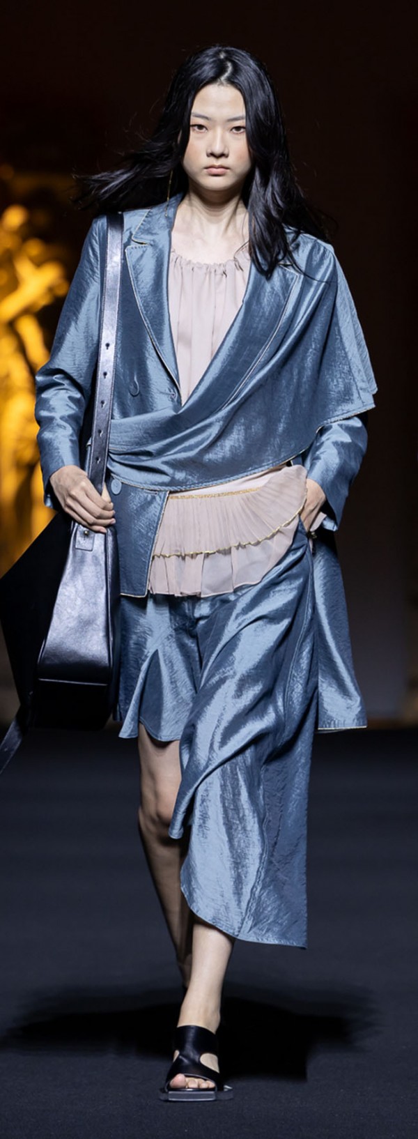 The overall silhouette and volume seeks to present a modern heritage by combining flexible movement and contrasting elements in a balanced manner by adding activity to elegance, strength to lightness, strength to softness, immobility to fluidity, and darkness to light.