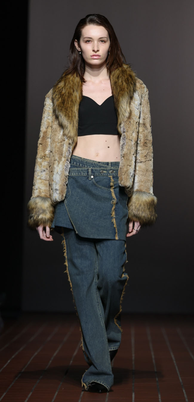 편안하고 부드러운 소재와 실루엣을 선보이며 자연스럽게 흔들리는 프린지 요소를 니트웨어, 스커트, 아우터, 데님 등에 접목시켰다.