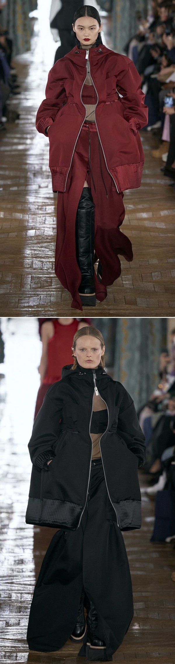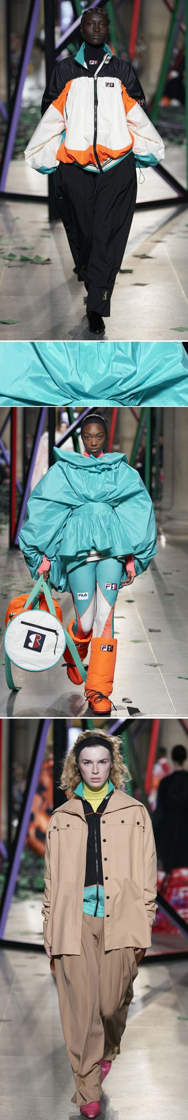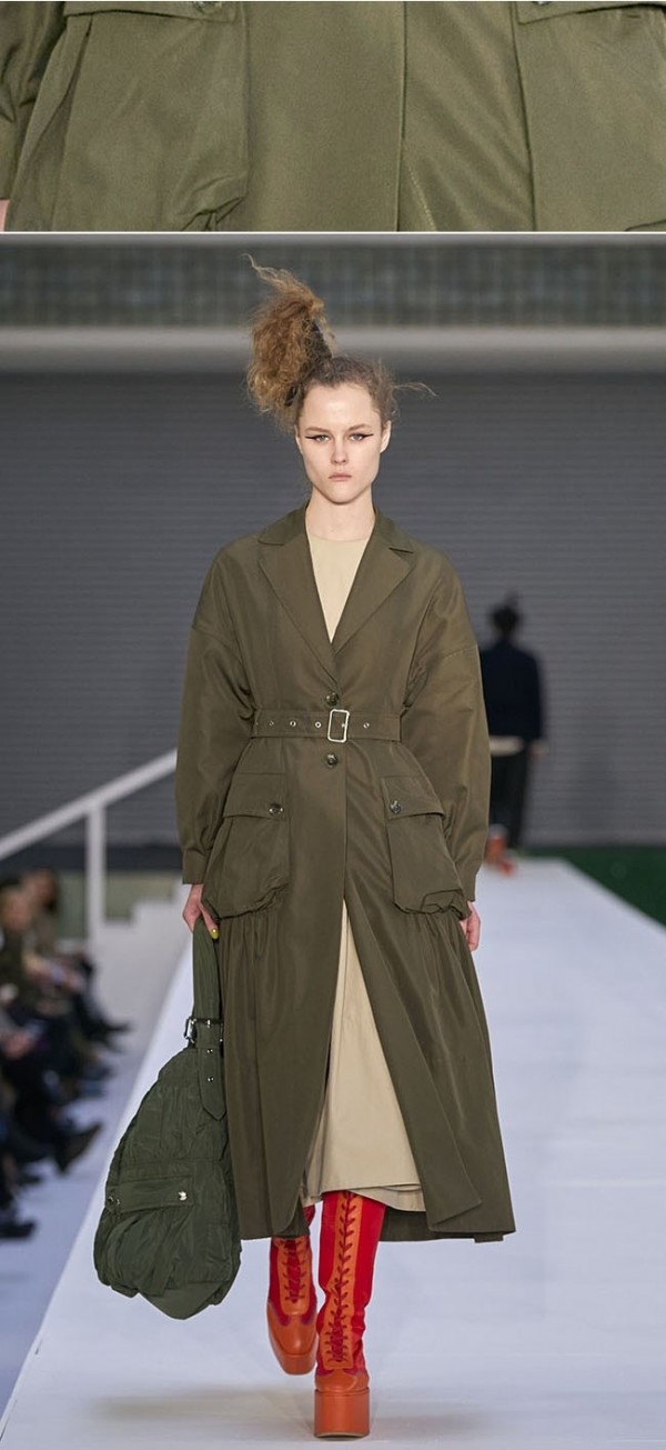 오피스룩, 페미닌룩, 캐주얼룩, 아웃도어룩 등을 아우르며, 실용적인 아웃도어 소재들이 다양하게 활용되고 있다.