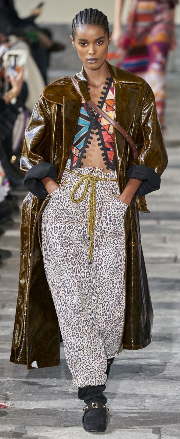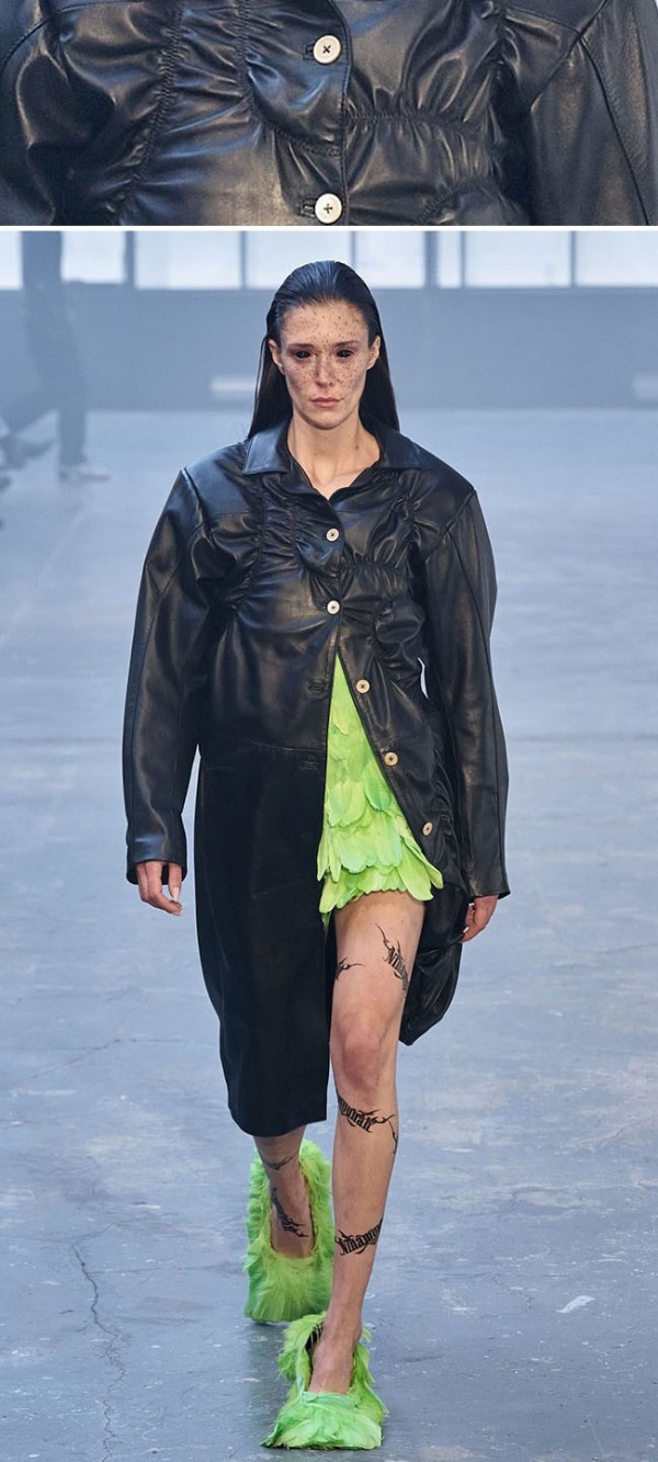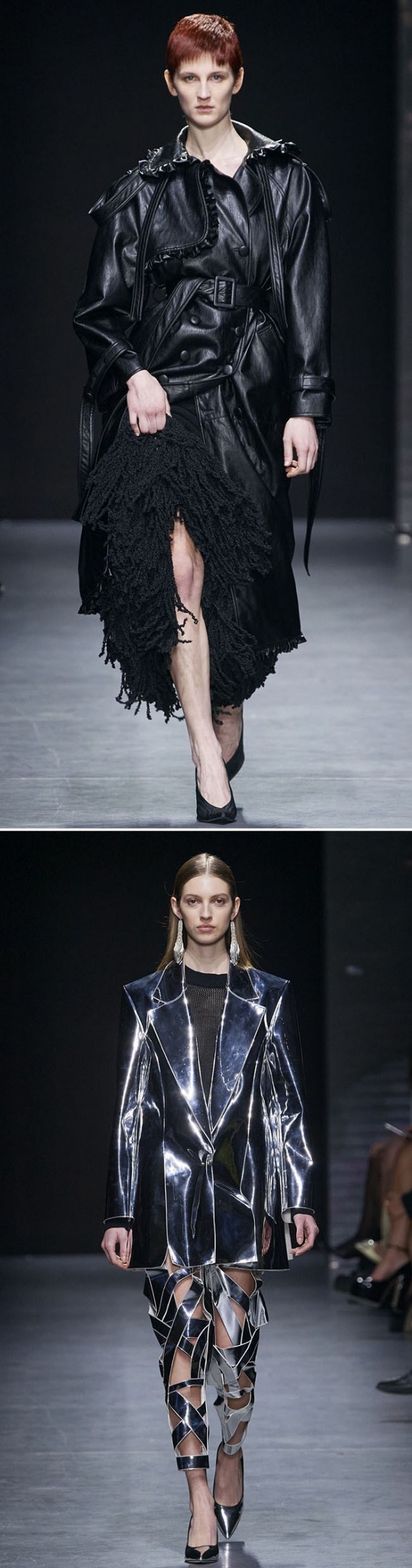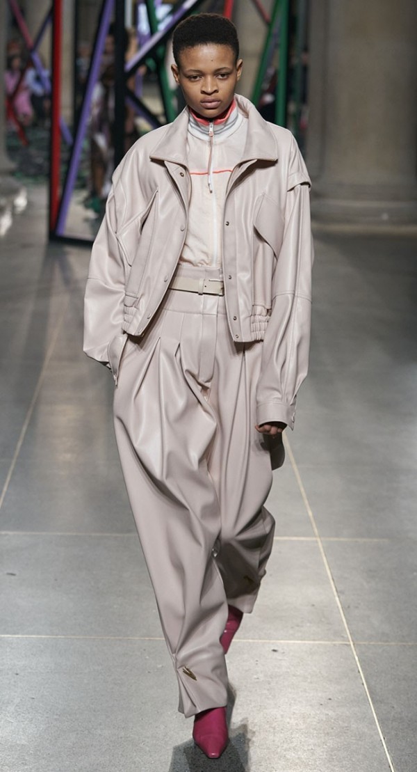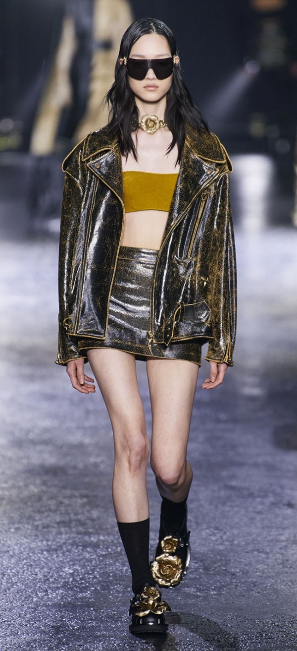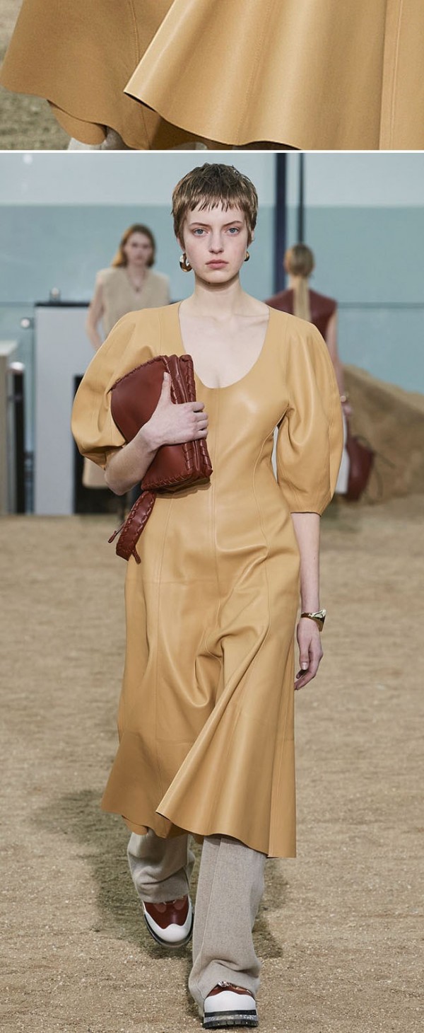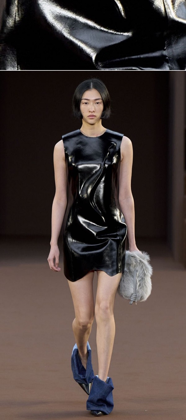 유연하게 업데이트 된 가죽은 아우터 뿐 아니라, 드레스, 팬츠, 셔츠 등 다양한 아이템에 활용되고, 광택감 있는 표면의 가죽소재는 파티웨어 강세와 맞물려 더욱 활용도가 높아졌다.