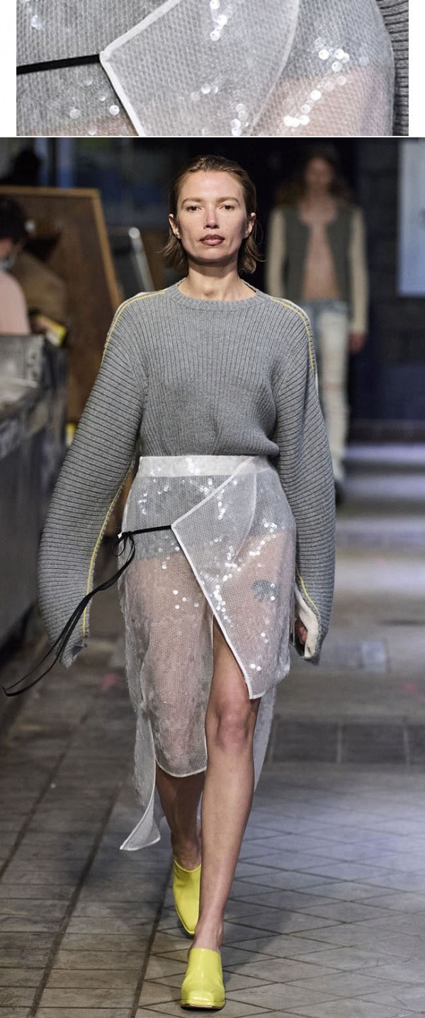 장식적인 시퀸/글리터 역시 실용적으로 업데이트 되었으며, 일상복에서도 스타일에 포인트를 주는 소재로 더욱 폭넓게 활용되는 것이 특징이다.