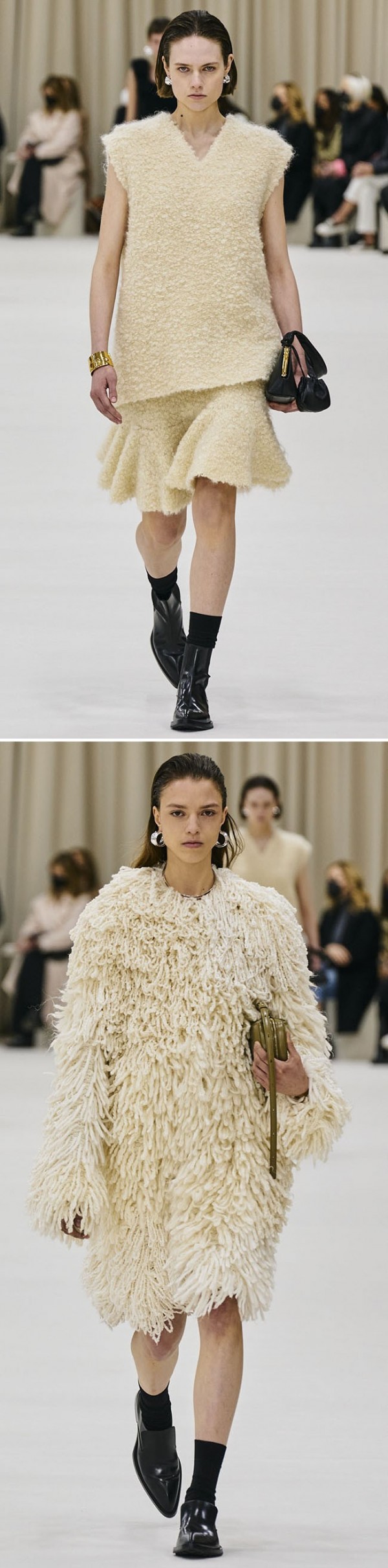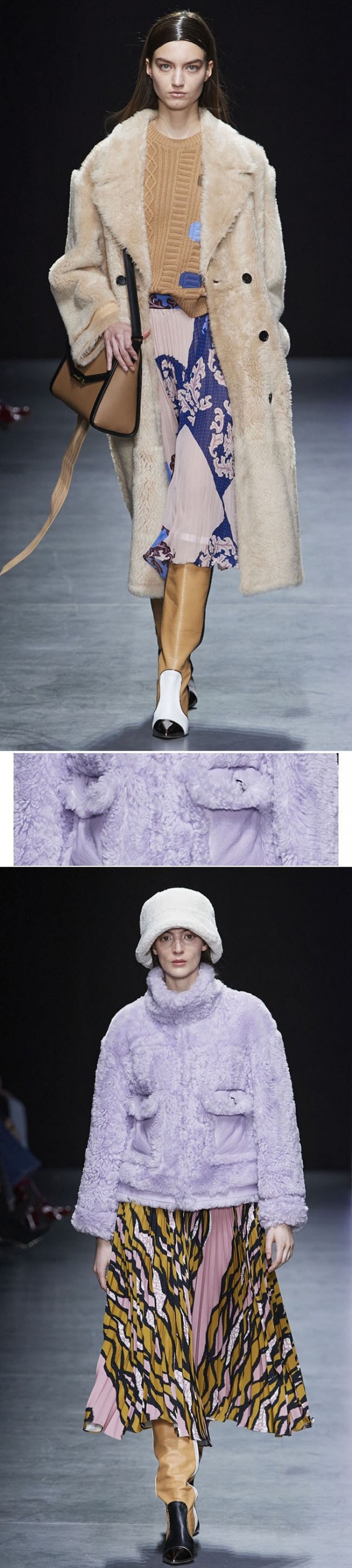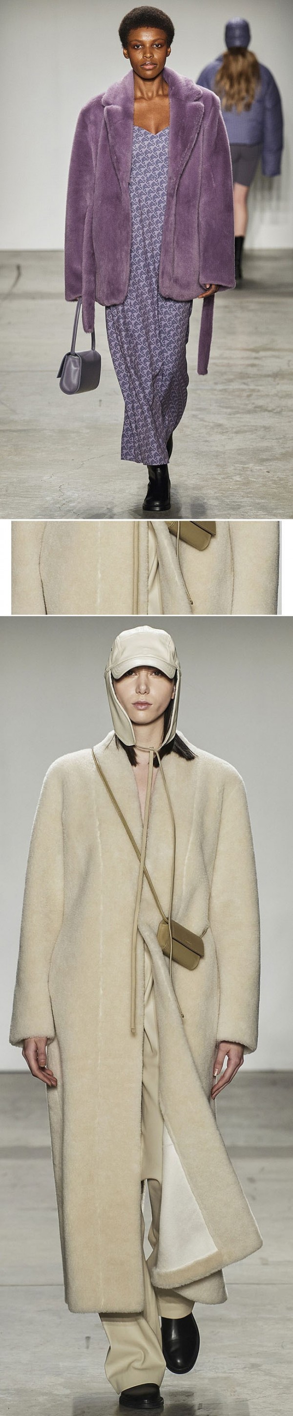 이번 시즌 여성복에서는 전형적인 모피소재보다는 시어링 소재와 같은 가공된 미니멀하고 심플한 텍스처로 실용성을 강조한다.